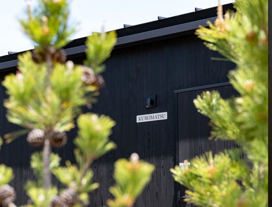 この度淡路島にオープンした「KUROMATSU」と「SUISEN」は、この理念を継承しつつ、エネルギーの自給自足を目指しながら、一部既存インフラも活用する「セミオフグリッド型」の仕組みを採用しています。これにより、できるだけ環境に負荷をかけず、より快適で安定した滞在をご提供します。