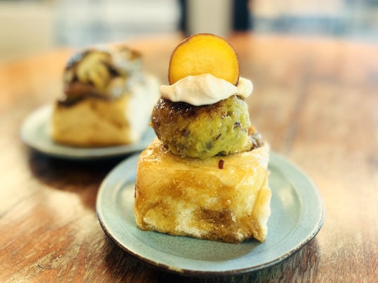 スイートポテトと大学芋の2つの美味しさを一度に楽しめる、贅沢な一品です。ロールパンにしっとり濃厚なさつまいもペーストを乗せ、あまじょっぱいみたらしソースをかけてキャラメリゼしました。仕上げに、満月をイメージした大学芋をトッピングしました。