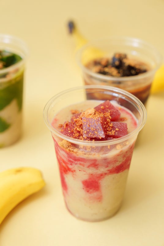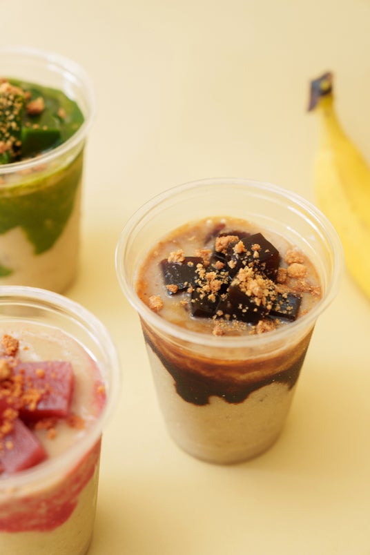 同日より有機バナナを贅沢にまるごと1本使用し、有機のアガべシロップを合わせたkoe donutsオリジナルのバナナジュースもリニューアル。1日の販売数が100杯以上を記録したこともある大人気の定番商品です。素材本来のおいしさをお楽しみいただけるプレーンに加え、ゼリーとクランブルのトッピングがデザートのようなストロベリー、抹茶、エスプレッソコーヒーの新フレーバー3種をラインアップしました。