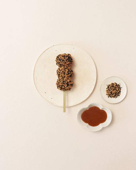 有機醤油と有機粉糖で作った甘塩っぱいみたらしグレーズに2種類の有機いり胡麻をたっぷりとまぶしました。