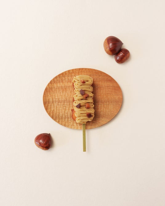 国産の栗を使用したモンブランクリームをたっぷりと絞り栗の甘露煮を飾りました。