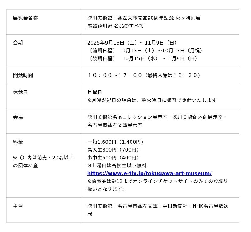 秋季特別展「尾張徳川家 名品のすべて」開催