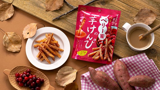 本商品は、九州産さつまいもを使用したカリッと香ばしい芋けんぴに、果肉たっぷりのクランベリー蜜を贅沢に絡めた、新感覚のお菓子です。従来の「芋けんぴ」に新たな味わいを加えて生まれた、当社の『果実蜜の芋けんぴ』シリーズに加わる新フレーバーとして登場いたします。