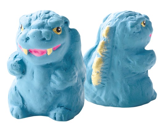 オリジナルデザインで仕上げた陶器製のゴジラ形のおみくじ。おせちを食べながら新年の運勢を見てみよう。