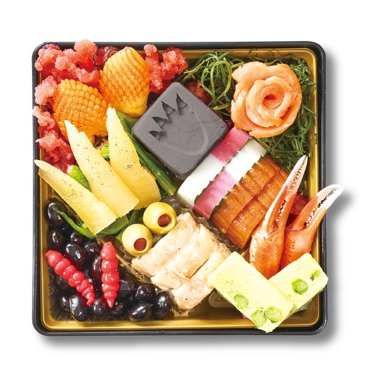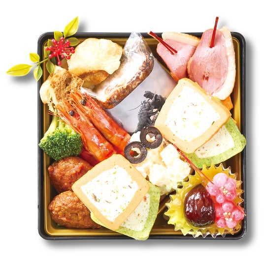 2026年版のおせちは、『シン・ゴジラ』(2016)や『モスラ』(1996)など、歴代の東宝特撮作品の中から周年を迎える作品にスポットライトを当て、和洋中の豪華な三段重おせちを開発。各作品をモチーフとしたオリジナル料理を彩り豊かに盛り付け、趣向を凝らした「ゴジラおせち2026」をお届けします。ここでしか手に入らない4つの特典のほか、数量限定の【DX(デラックス)版】には、『ゴジラ・エビラ・モスラ南海の大決闘』(1966)のゴジラとエビラの海上戦の情景オーナメントが付属。2026年の新しい年を楽しく華やかに演出します。