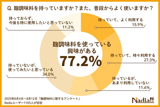 注目度急上昇!麹調味料に関心を持つ人は77.2%一方で、「持っていても使いこなせない!」麹調味料のお悩みあれこれ
