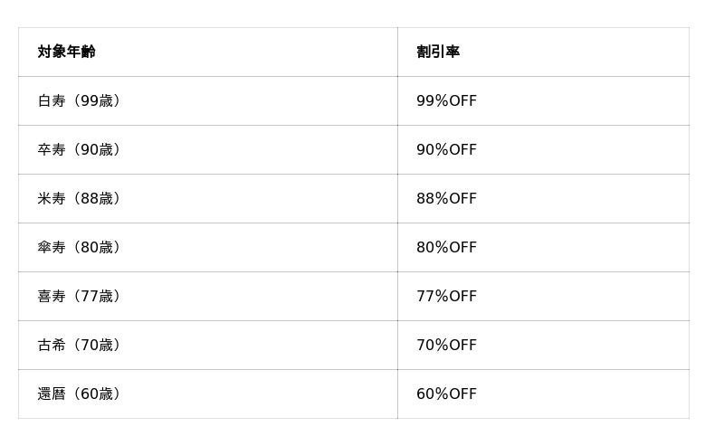 ■最大99%OFF!節目の“年齢”だけお得になる、秋の特別優待