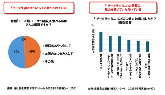 発売前に実施したお客様調査では、「食べきりサイズで便利」「食べる量をコントロールしやすい」など、「 チータラ(R) ミニ」ならではの特長に魅力を感じていただいています。