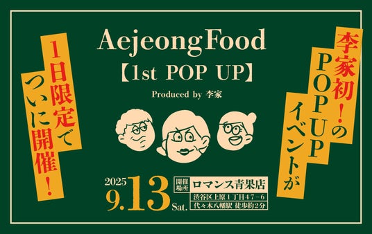 人気Youtuber「李家everyday」のえーへ・サラ・オンマがプロデュースしている<Aejeong Food>が、初のPOP UP STOREを東京で開催いたします!