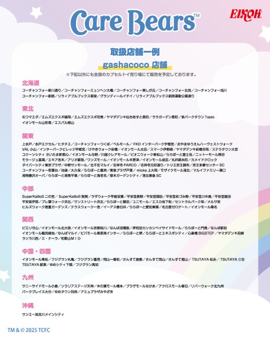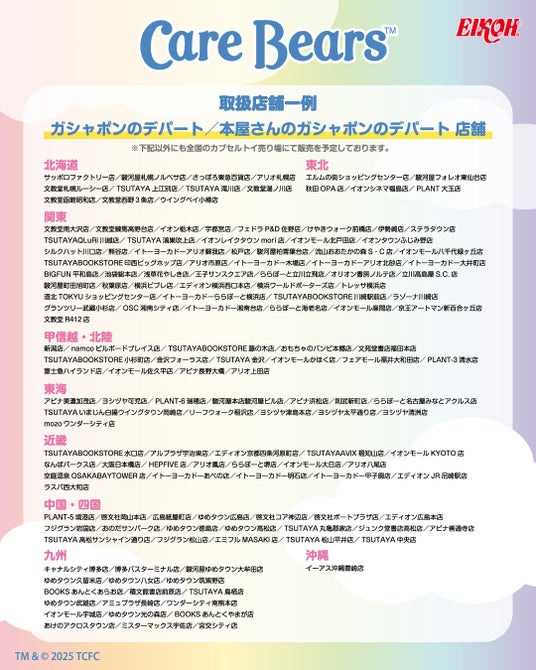 株式会社エイコー(本社:東京都墨田区)は、【ケアベア】のオリジナル商品を、全国のカプセルトイ売り場にて発売することをお知らせします。