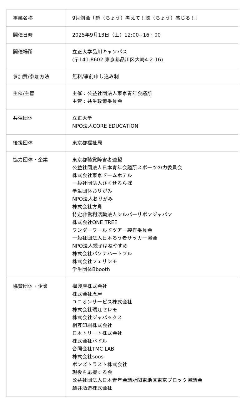 公益社団法人東京青年会議所9月例会「超(ちょう)考えて!聴(ちょう)感じる!」