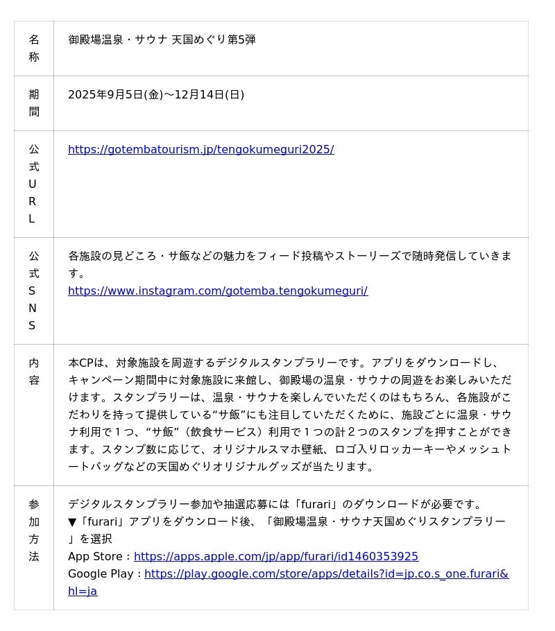 キャンペーンページURL:https://gotembatourism.jp/tengokumeguri2025/