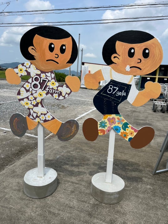 87株式会社(本社:滋賀県東近江市、代表:増田健多)が運営する、お花ジェラート専門店87gelaは県民に親しまれている交通安全キャラクター飛び出し坊やのオリジナルを2体、駐車場横に設置。地域の交通安全啓発と思わず写真を撮りたくなるような、可愛らしくポップなデザインでお披露目しました。
