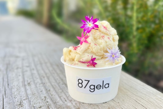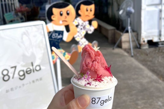 2025年3月にオープンしたお花ジェラート専門店。白を基調とした店舗にスタッフは麦わら帽子でお花農家の装い。食用花専門農園87farmの世界観を表現したお花ジェラート専門店です。87farmは2018年より全国的に珍しい食用花の専門農園として洋菓子店や飲食店を中心に食用花(エディブルフラワー)を全国に卸しをおこなってきました。自社農園の食用花を活用したお花の可愛さと香りに癒されていただけるジェラートショップです。