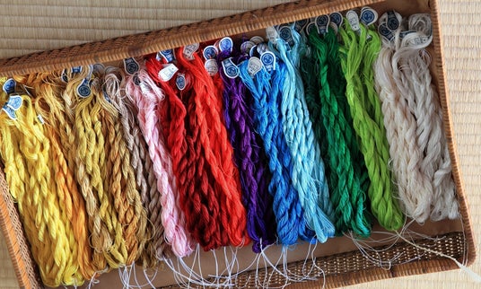 京都市下京区・松原通に店を構える明治4年創業の糸屋。豊富な色展開の絹糸や綿糸は、手芸愛好家からも厚い支持を集めています。