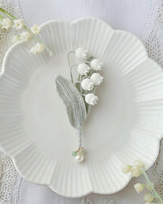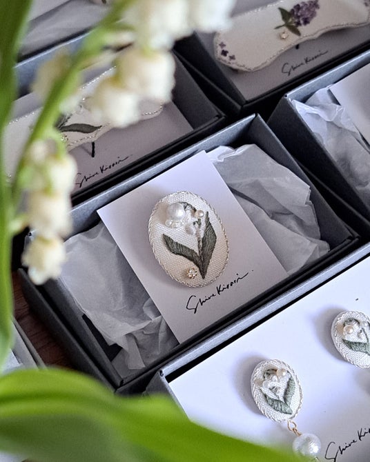 <shinekirari(シャインキラリ)>すずらん刺繍クラシックブローチ 6,600円