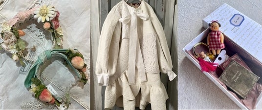 <レ ジュメル ドゥー>左:<千たく屋>布花ヘッドアクセサリー 5,500円、中:<hanatsukuriya>キルト&レースコート 69,080円、右:<Le_sac>フランソワーズちゃんの小さなお楽しみセット 22,000円