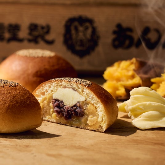 岡田謹製『あんバタパン』が『薩摩芋』とタッグを組んだ。主将『安納芋』の薩摩芋軍団で気分は秋晴れな『餡子』に鍛えあげ、バタークリームとかじってみれば、百戦錬磨の味がする。
