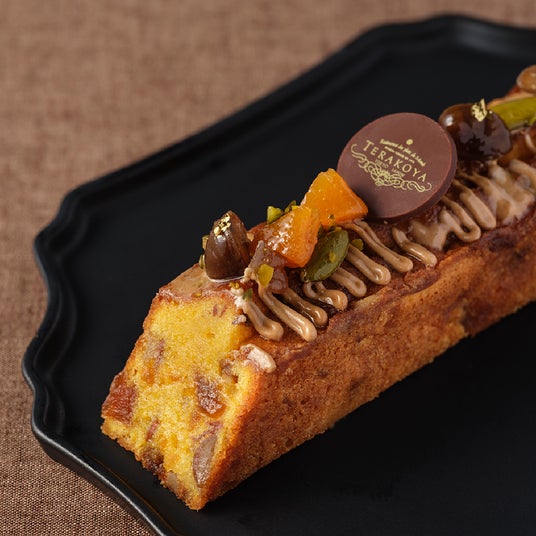 TERAKOYA 秋限定のプレミアムガトー。渋皮栗とかぼちゃに、キャラメリゼしたリンゴと香ばしいナッツを合わせて焼き上げました。カルヴァドスの華やかな香りが広がります。