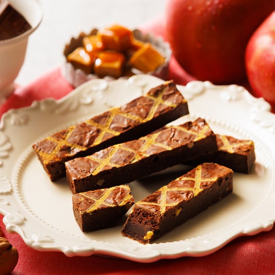 2種類のクーベルチュールチョコレートをブレンドした生地に、くるみと林檎のお酒「カルバドス」に漬け込んだ林檎のドライフルーツを練り込みました。上品な林檎の香りとほろ苦いキャラメルの絶妙なハーモニーをお楽しみください。