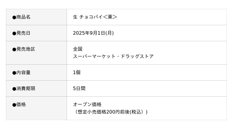 秋の味覚を丸かじり、栗を贅沢に楽しめる「生 チョコパイ」登場!『生 チョコパイ<栗>』2025年9月1日(月)より全国スーパー・ドラッグストアにて発売