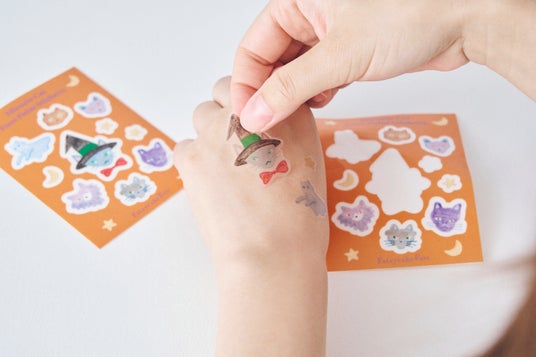 さらに、ハロウィンをもっと楽しめる「フェイスシール」とのセットも登場!前田ひさえさんの可愛いミラクルキャットたちを手軽に顔や肌に貼れるデコレーションシールです。お子さまのハロウィン仮装やイベント時にもおすすめ。ペイントよりも気軽で、剥がすのも簡単!ハロウィンシーズンにぴったりの遊び心たっぷりのアイテムです。