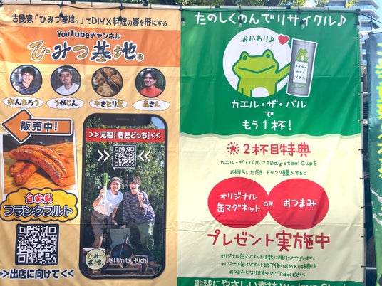 今回のイベントでは人気クリエイター「ひみつ基地。」のキッチンカーブースとの連動企画が実現し、「カエル・ザ・バル」を含めた2店舗で1Day Steel Cupを使ったドリンクを提供しました。千葉市中央公園付近では「1Day Steel Cup」を片手にお祭りを楽しむ方や、乾杯している方など思い思いの形でカップを利用している様子が見られました。
