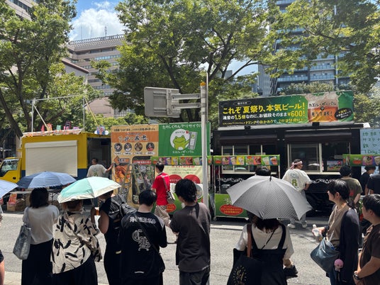 本取り組みは、イベント向けスチール製容器「1Day Steel Cup(ワンデー・スチール・カップ)」を多くの方に体験してもらうことを目的に、千葉の夏の風物詩である「第 50 回千葉の親子三代夏祭り」の本祭りにオリジナルキッチンカー(店名:カエル・ザ・バル)を出店しました。