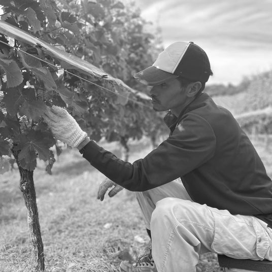 「第一に色素抽出をし、出来る限りワインの色味を濃くすることにこだわっています。発酵開始前にはコールドマセラシオンを行い、発酵温度は最高28.5℃で、スムーズな発酵を促すために、エアレーションも数回行います。発酵終了後は数日のマセレーション(果皮をもろみに浸漬すること)を行います。