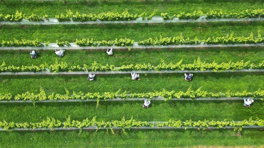 今回のグランドゴールド賞に輝いたワインには、3品種の赤ワイン用ぶどうが使われていますが、その中の「カベルネ・ソーヴィニヨン」と「メルロー」の栽培には、一筋縄では乗り越えられない難しい壁も多々ありました。近年の温暖化の影響もある中で、対応策を考えながら色づきや味わいの向上を目指すアプローチを続け、ようやくぶどうが応えてくれるようになってきています。収穫時には、房の色づきを見て樹ごとに色分けをし、その後、色の濃い房・薄い房を選別。そこからさらに高度な選果も行っています。