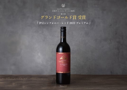 7月に山梨県で審査会が開催された「日本ワインコンクール2025」において、860点の出品ワインの中から、1本だけ選ばれたグランドゴールド賞受賞ワイン「伊豆シンフォニー・レッド2022プレミアム」を、9月13日(土)より発売いたします。なお、こちらのワインは、同コンクールにおいて欧州系赤品種ワインでは史上初の受賞となります。