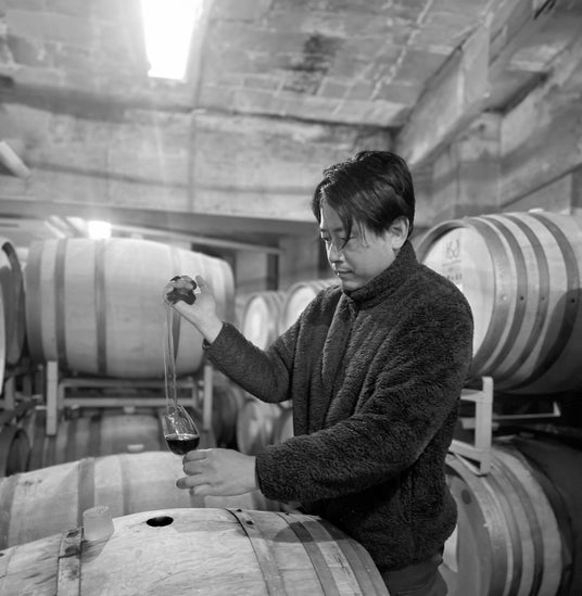 樽での熟成では、基本的にはフレンチオーク樽を使用しておりますが、一部東欧産のオーク樽も使用しています。内陸性の気候で冬期は気温が下がり、木目が詰まっているため、ゆっくりと芯のある樽の風味がつきます。それとは別にビターチョコレート様の甘い焙煎した香りが特徴的な樽も使用。これは自分が単にその香りがするメルローのワインが好きだからです。