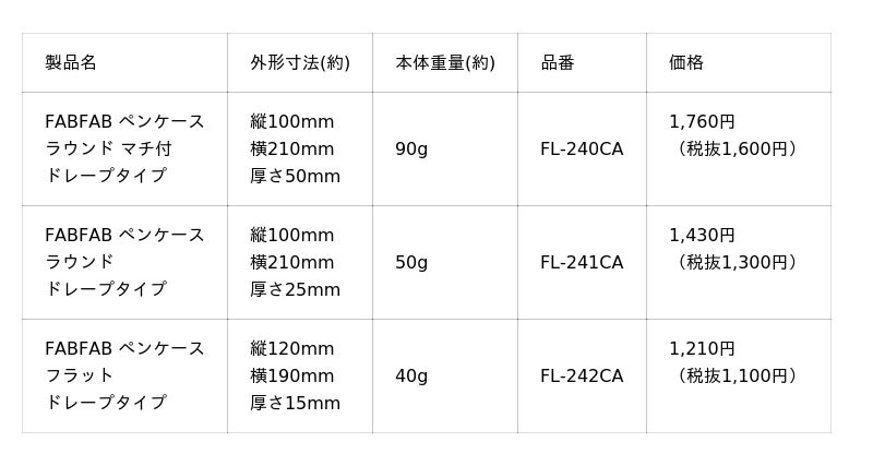 光沢あるドレープがモードな印象のペンケース「FABFAB ペンケース ドレープタイプ」3アイテムを新発売