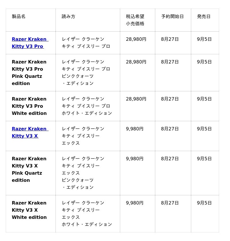 ■「Razer Kraken Kitty V3シリーズ」取扱店