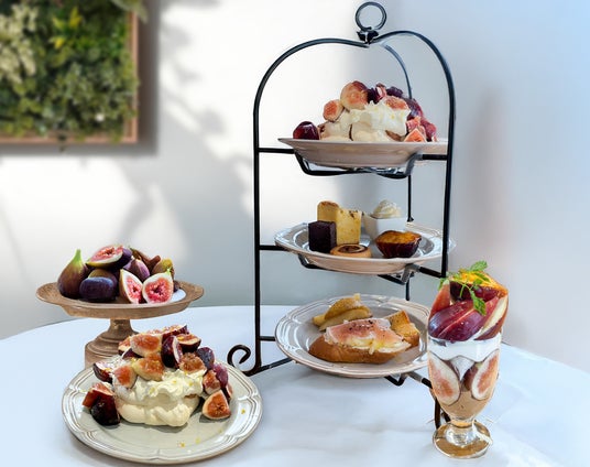近鉄八尾カフェ店では毎年8月下旬から9月のイチジクの時期に合わせて地元農家で朝どれされた甘いいちじくのパフェやデザートサンドイッチが登場しておりますが、例年の商品を見つめなおし、さらにブラッシュアップしたスイーツに加えて、1つのフルーツに特化したフェア恒例のアフタヌーンティーも登場。
