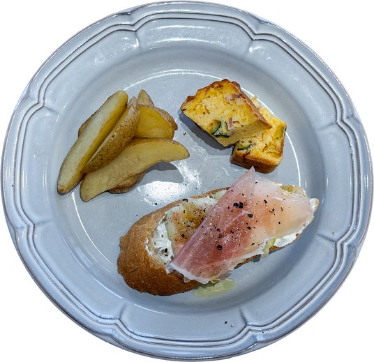 下段:イチジクと生ハムのブルスケッタ、ポテト、ケークサレ