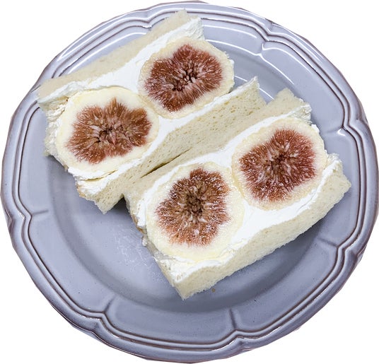 ■ふわふわ食パンの「いちじくサンド」こだわりのふわふわ食パンと甘すぎない生クリームにイチジクを丸ごと2玉使用したデザートサンドイッチ