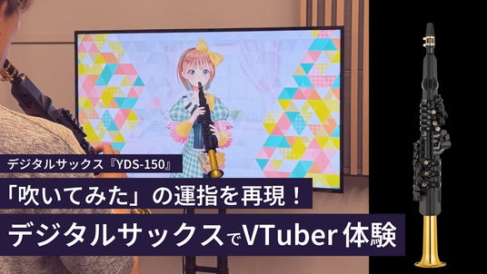 デジタルサックス「YDS-150」のモーションセンサーを応用したシステムです。今回が初公開となります。「YDS-150」演奏時の運指などの動きをアバターで忠実に再現できます。アバターとして、静岡県浜松市を拠点に活動するVTuberの調月音葉さんにご協力いただきました。