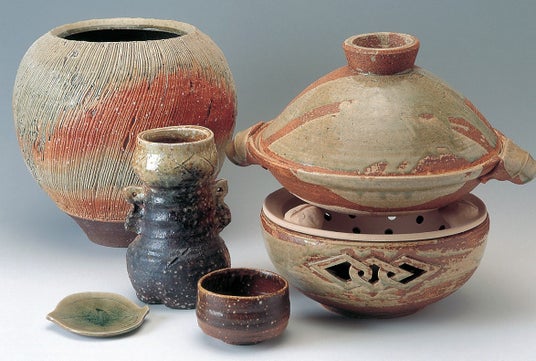 四日市萬古焼は、江戸時代中期に、桑名の商人・沼波弄山が、茶の趣味が高じて、現在の朝日町に窯を築き、茶器を焼いたのが始まりとされています。萬古焼は、陶器と磁器の中間的な性質を持つ半磁器に分類され、大きな特徴は耐熱性にあります。その耐熱性を活かし、土鍋等の調理器具が数多く生産されています。また、急須も萬古焼を代表するものの一つで、鉄分を多く含む地元の赤土粘土を使用し、釉薬を使用せず焼き締めた紫泥急須は、萬古焼のシンボルになっています。1979年(昭和54年)1月12日から経済産業大臣指定の伝統的工芸品に指定されています。