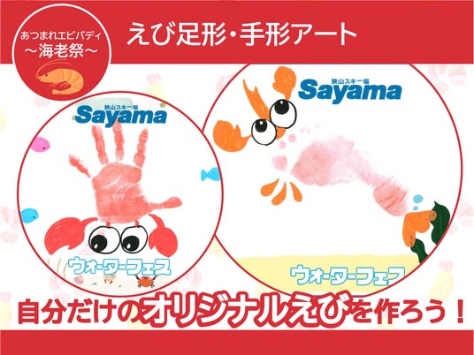 『海の仲間が大集合』をコンセプトに好評開催中のウォーターフェス2025では、子育て中のご家族3世代でお楽しみいただけるよう、「海老の日・敬老の日」となる当日は、65歳以上の方が「入場無料」となる特別DAYを開催するほか、「海老の日・敬老の日」にちなんだアート作品をご持参のお客さま(※小学生以下限定)には、来場者特典として狭山スキー場オリジナル「海老祭缶バッジ」をプレゼントします。