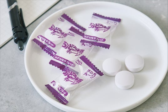 グレープ味のタブレットで、手軽にぶどう糖を補給