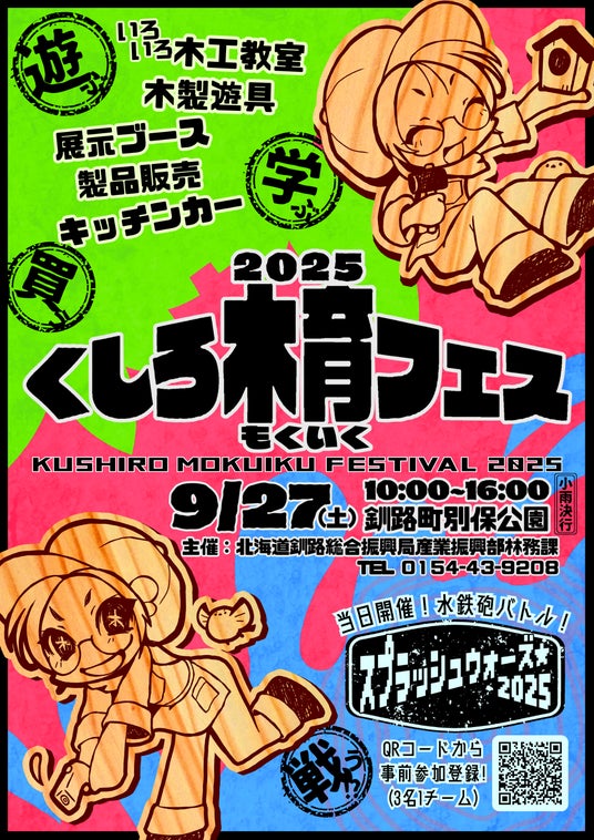 北海道釧路総合振興局では、2025年9月27日(土)に多くの方々に楽しみながら木にふれあっていただくために「くしろ木育フェスティバル2025」を釧路町別保公園にて開催します。