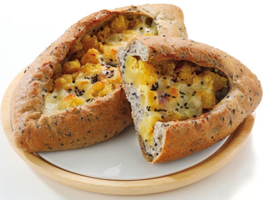全粒粉、黒ごま、ライ麦粉を使用した香ばしい生地で、甘みのあるさつまいも甘露煮を包み、サムソーチーズをのせて焼きあげました。さつまいものやさしい甘みとチーズのコクが絶妙に調和し、黒ごまの香ばしさがアクセントとなって、豊かな風味をお楽しみいただけます。