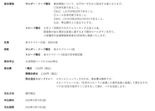 ※賞金はボルダー、リード、スピードの3種目のみ