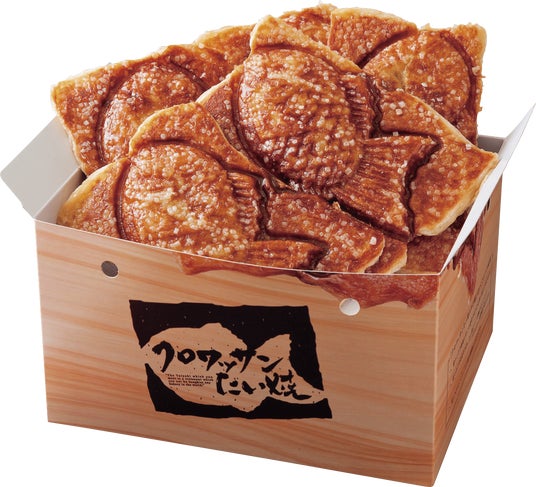『クロワッサンたい焼』は、当社が独自に開発した24層の特製クロワッサン生地を専用機器で両面から一気に焼き上げることで、表面のザラメ(片面)が香ばしくキャラメリゼされ、独特の “サクッ” とした食感が特長のオリジナルたい焼。常温でお召し上がりいただけるため、テイクアウトやお土産にも大変人気の商品です。