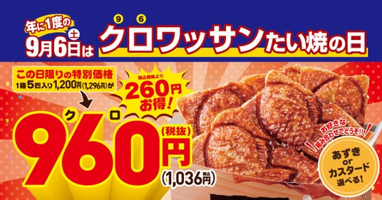 内容:『クロワッサンたい焼5匹入りセット』を、“クロ(96)” にちなんだ特別価格 960円(税込1,036円)で販売