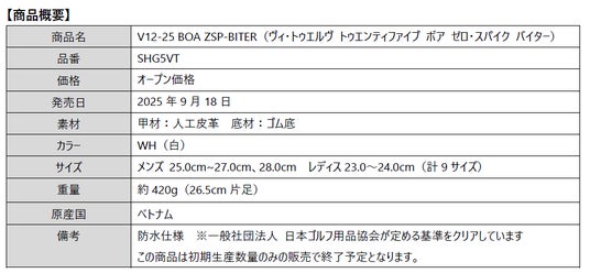 ゴルフシューズ 『V12-25 BOA ZSP-BITER』新発売