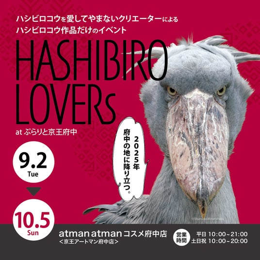 京王グループでコスメを中心に生活雑貨を販売する株式会社京王アートマン(本社:東京都多摩市、以下 京王アートマン)は、2025年9月2日(火)から10月5日(日)まで atman atman コスメ府中店にてハシビロコウグッズ販売イベント「HASHIBIRO LOVERs」を期間限定開催いたします。