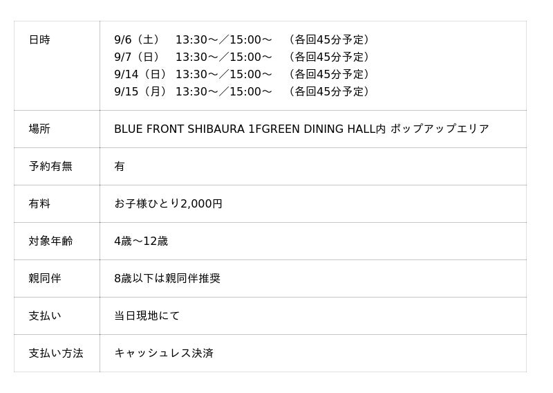 会場:BLUE FRONT SHIBAURA 1F GREEN DINING HALL内 ポップアップエリア