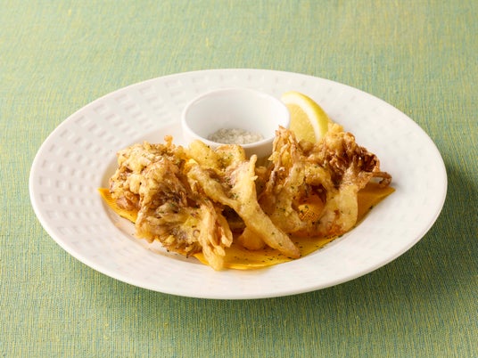 衣のサクサクとした食感と舞茸のジューシーな味わいがやみつきになるフリットです。